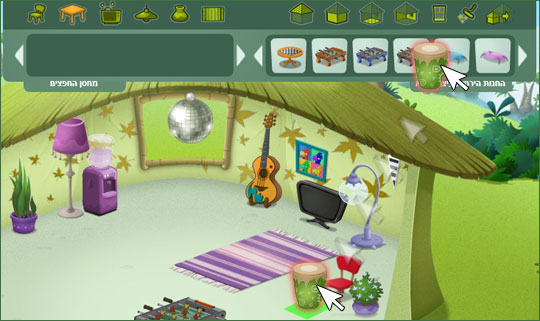 You may buy additional items for your home by clicking this icon. Select the item that you desire from the store, approve the purchase and the item will appear as part of your storage. To get back to your home click on.