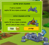 החלקות הפנויות לגידול תלויות בדרגת משאבת המים שלכם. ככל שיהיו לכם יותר מים להשקיה כך תוכלו לעבד יותר חלקות אדמה. כדי לשדרג את משאבת המים, הקישו עליה. חלון ייפתח ויראה לכם כמה עולה השדרוג, וכמה זמן הוא ייקח. בתום השדרוג תוכלו לשאוב יותר מים , ומספר החלקות שתוכלו לעבד יגדל.